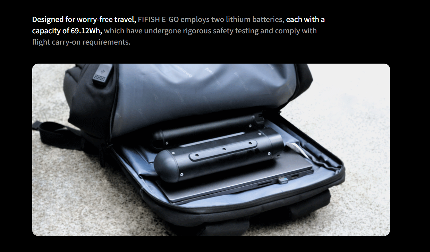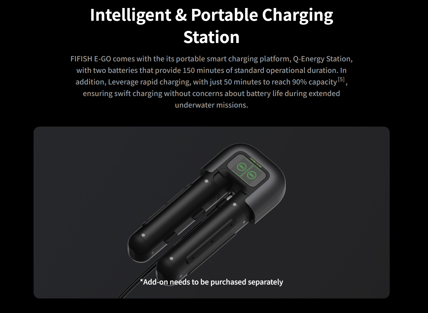 The Q-Energy Station provides up to 150 minutes of operation, supports fast charging to 90% in 50 minutes, and uses airline-compliant 69.12Wh lithium batteries.