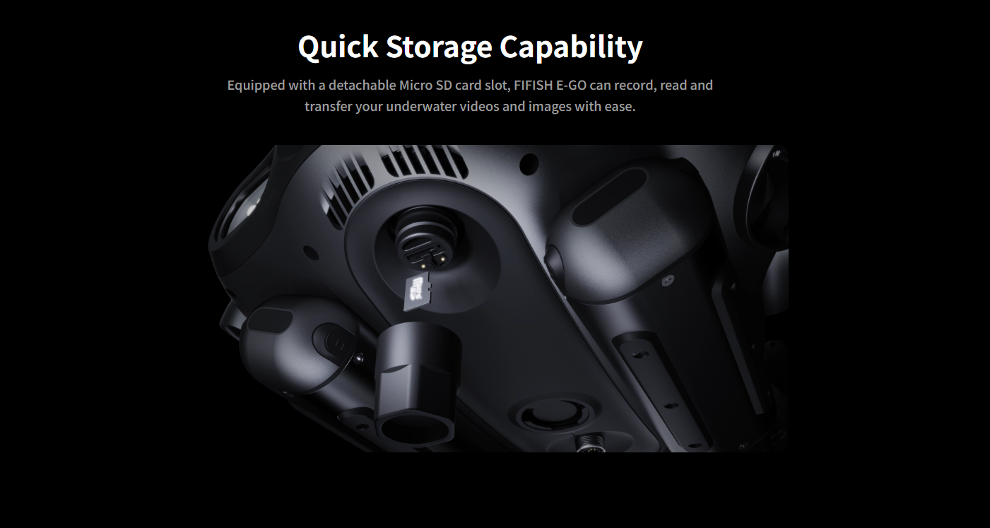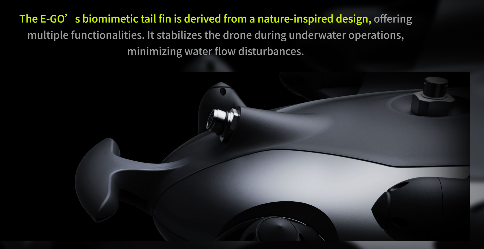 Drawing inspiration from the powerful hammerhead shark, FIFISH E-GO adopts a streamlined, hydrodynamic design that seamlessly adapts to underwater environments while maintaining stable propulsion performance. Its biomimetic tail fin design stabilizes the ROV and minimizes water disturbance.