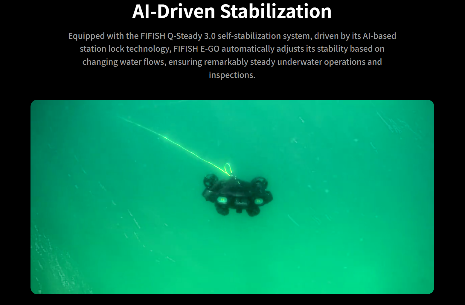 Equipped with FIFISH Q-Steady 3.0 AI stabilization, the system automatically adjusts to water currents, ensuring stable underwater operations.
