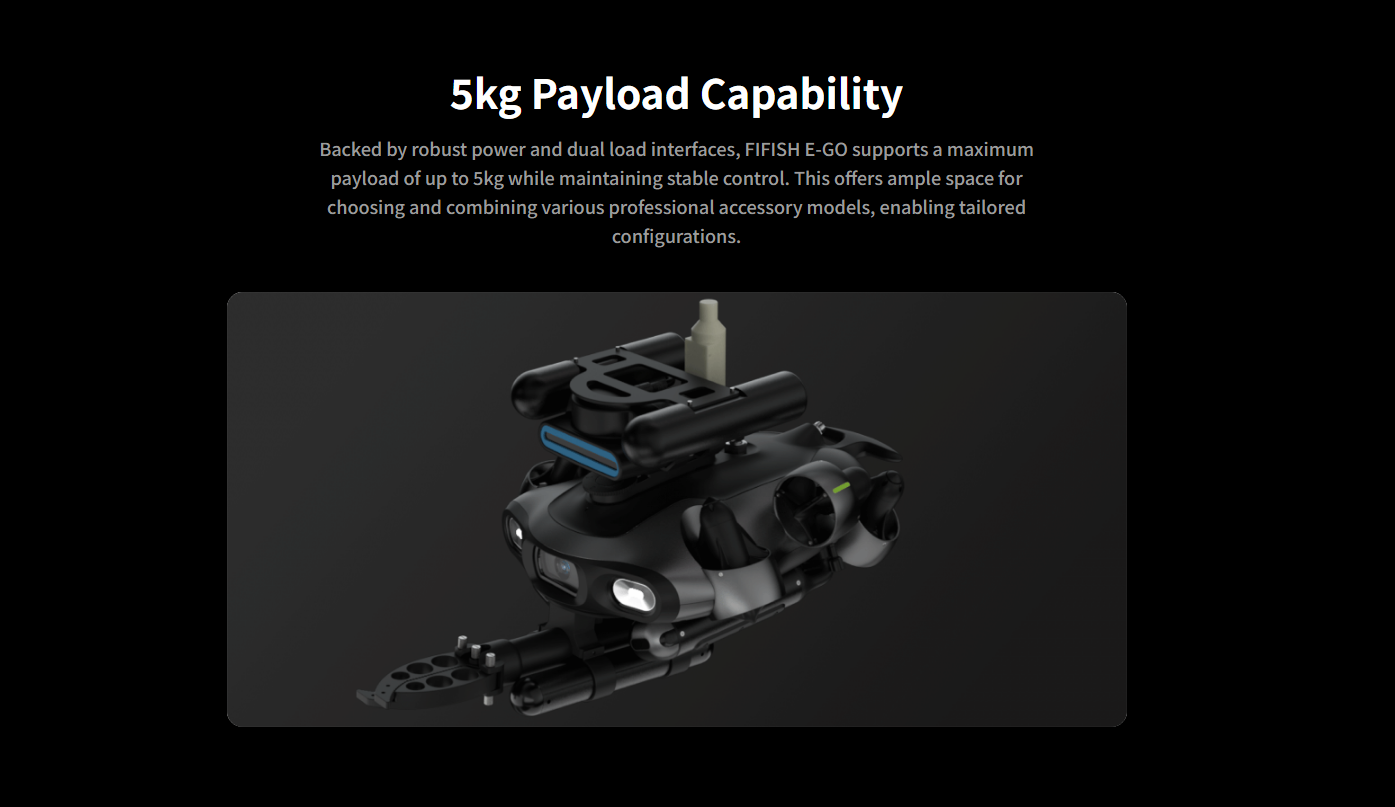 Supports up to 5 kg payload with dual payload interfaces while maintaining stable handling.