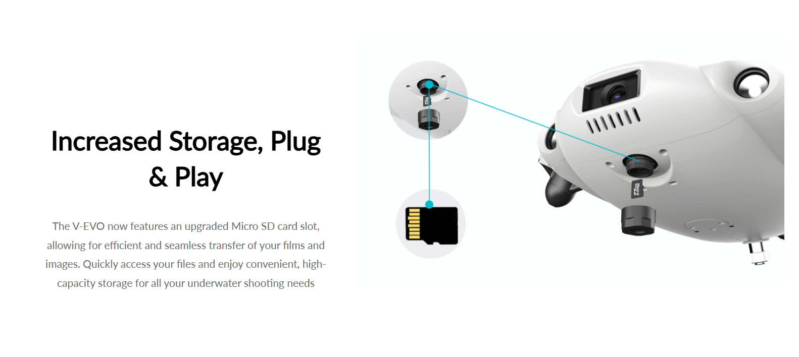 With the upgraded camera system of V-EVO, you can easily capture professional-grade footage and record breathtaking underwater moments with smoother motion and exceptional clarity.