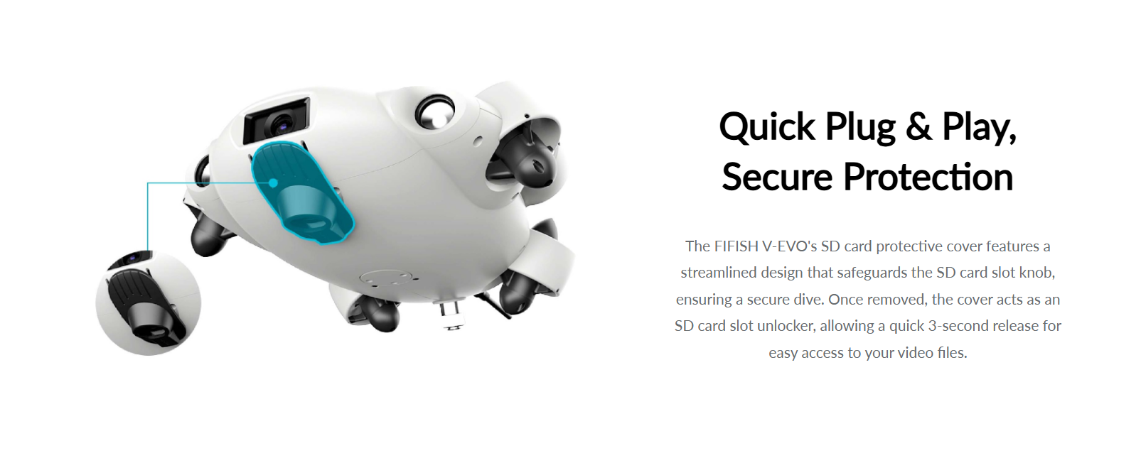 QYSEA’s FIFISH V-EVO captures stunning 4K ultra-high-definition video at up to 60 frames per second, with an ultra-wide 166° field of view. It elevates underwater imaging to a new standard, delivering vivid, immersive, and unforgettable visuals.