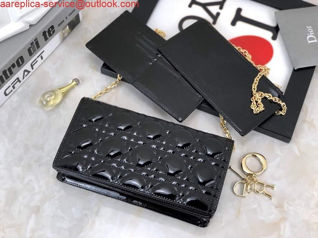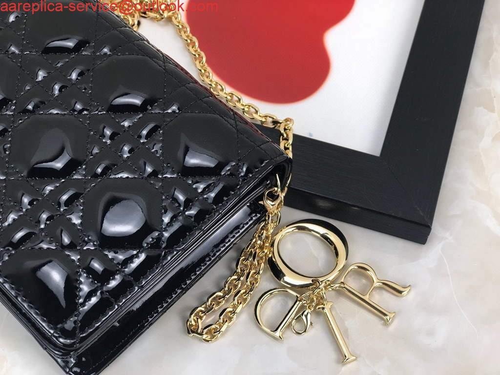 Replica Dior S0204 Lady Dior Pouch Patent Cannage Calfskin Black