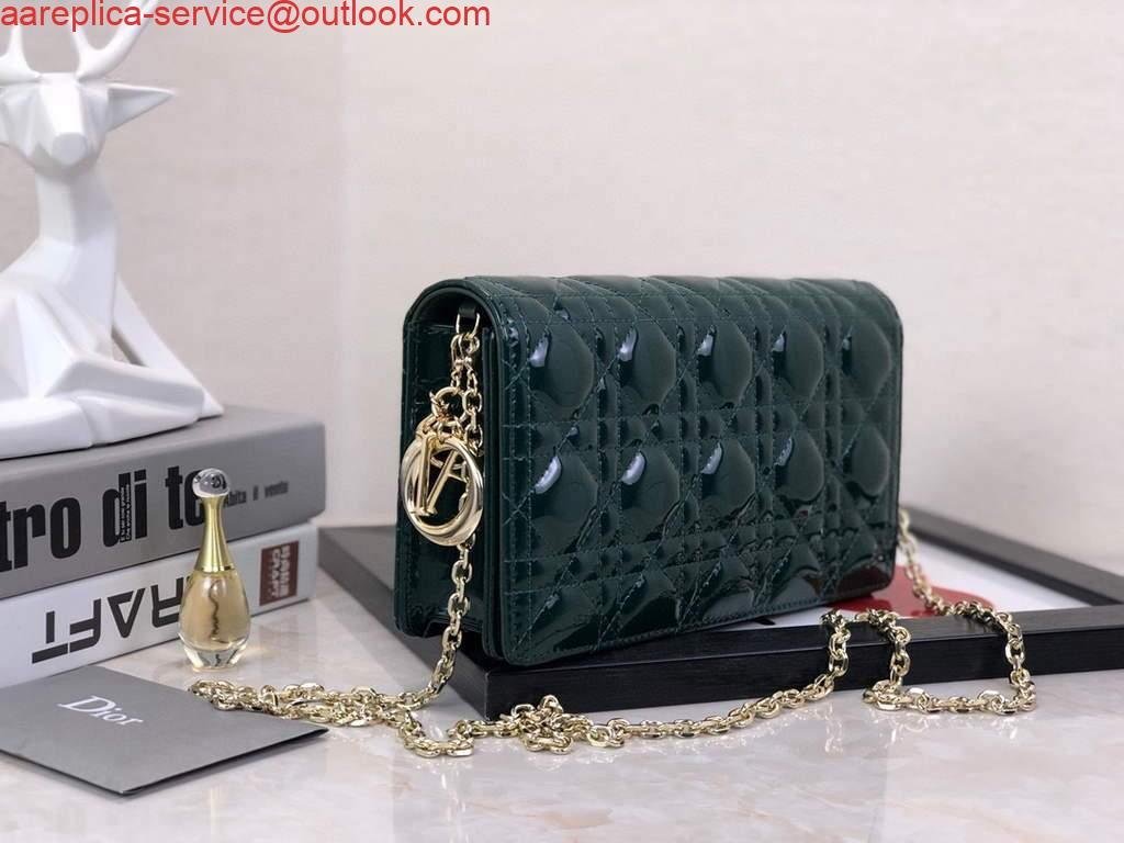 Replica Dior S0204 Lady Dior Pouch Patent Cannage Calfskin Dark green